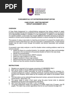 The report includes background information, findings, conclusions as well as recommendations. Find more similar flip pdfs like ent 300 report(new). Get a quick free quote. We will write a custom case study specifically for you for only $13.90/page! All uitm students who further their study at bachelor level need to take principles of entrepreneurship course or ent530 to give guideline and expose students to the business orientation.