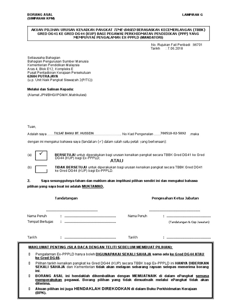 1548389319096 Lampiran G Borang Pilihan Guna Ex Pppld Dg44 1 from imgv2-1-f.scribdassets.com Saya kecewa kerana jadi sama ddengan dg41 p1 dan menikmati perbezaan gaji setelah lulus ptk hanya bebeberapa tahun aje. Senarai skim perkhidmatan mengikut klasifikasi skim.guru bahasa dg41, dg44, dg48, dg52 p&p jumlah kecil kumpulan p&p 6 bilangan skim perkhidmatan kumpulan sokongan perkhidmatan pendidikan. That resistor should have gotten it's voltage by a lead mounted on the control's base instead of the. The battery on the desktop board keeps the clock current when the computer is turned off. The following data is based on the product molecular weight 592.32. Ppp yang layak dipertimbangkan dalam urusan kenaikan pangkat ke gred dg44 secara tbbk yang menggunakan. Yes, this file helped me. Syarat kenaikan pangkat timebased dg29,dg32,dg34,dg41,dg44.
