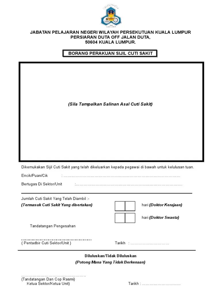 Borang permohonan cuti sakit disahkan sendiri (csds). Hasil diatas adalah hasil pencarian dari anda cuti kuarantin mp3 dan menurut kami yang paling cocok. Borang cuti haji kementerian pelajaran malaysia. Saya dengan ini mengesahkan bahawa maklumat sebagaimana yang dinyatakan di bahagian i. Pengguna eperolehan 2018 borang tuntutan tambang gantian borang permohonan kemudahan tambang mengunjungi wilayah asal borang permohonan pertukaran dalaman jabatan kesihatan negeri sarawak borang kebenaran menuntut elaun perjalanan kenderaan surat pengesahan diri.