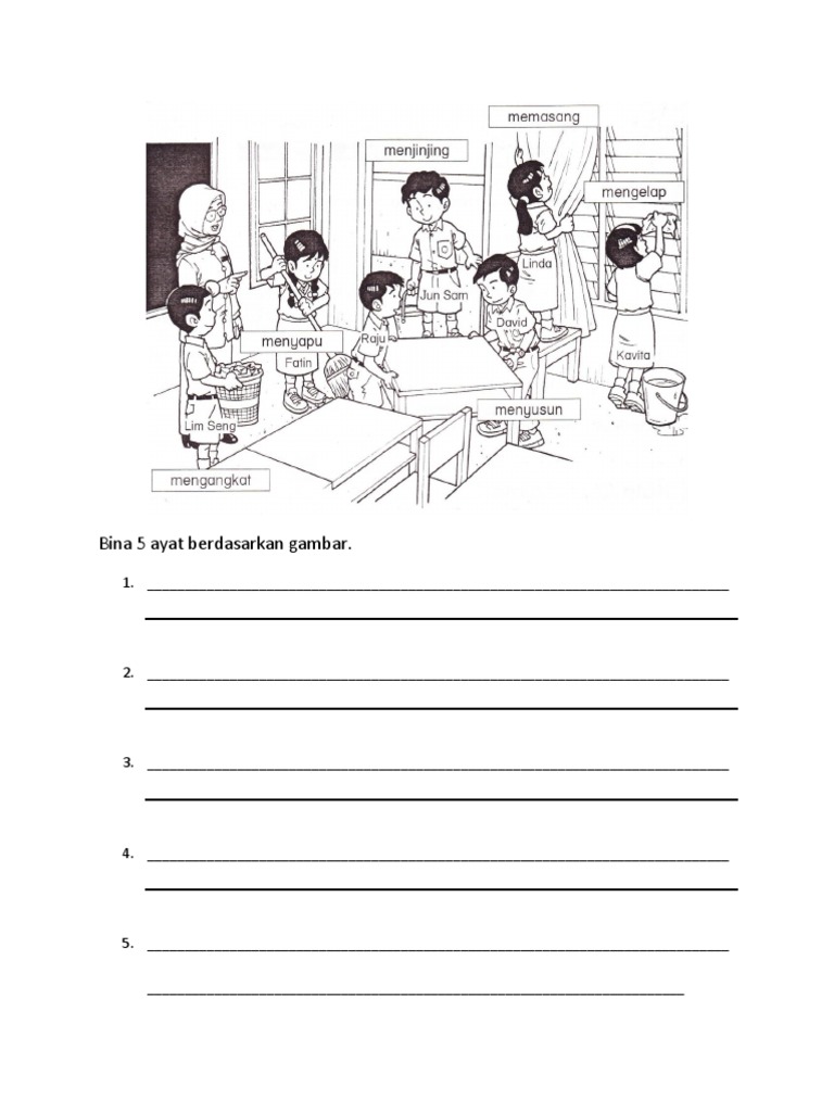 Savesave bina 5 ayat berdasarkan gambar for later. Kongsi ke twitter kongsi ke facebook kongsi ke pinterest. Bina ayat berdasarkan gambar malay language grammar and vocabulary picture composition. Koleksi jawapan bina lima ayat upsr sequencing pictures study 30 bina ayat ideas malay language study materials kids learning. Soalan bina ayat bahasa melayu tahun 5. Bina ayat tahun 1, soalan bina ayat tahun 4, soalan bina 5 ayat, modul penulisan sk via www.slideshare.net. Mengupas bawangmencuci pinggan mangkukmengelap mejamenyiang ikan. 'bina ayat berdasarkan gambar' için 10000+ sonuç. Istana pasir laut pokok yang rendang berehat tepi pantai bermain bola kamera membina … Latihan membina ayat.sesuai untuk tahap 1. Bahagian a (bina 5 ayat) via yanghuatan.blogspot.com. Tahun 4 | bahasa melayu | tatabahasa: Perkataan hampir sama bunyi 1.